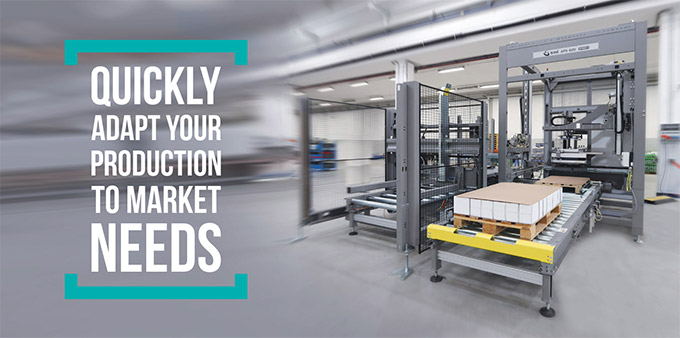 Sistemas automáticos de paletizado para producciones de hasta 140 paquetes/minuto