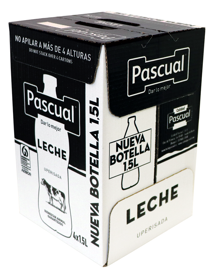 Tag: Caja wrap-around - Botellas PET - Leche y productos derivados - 2x2 packs - 2x4 packs - 3x2 packs - 1+ L - 1.5 L containers