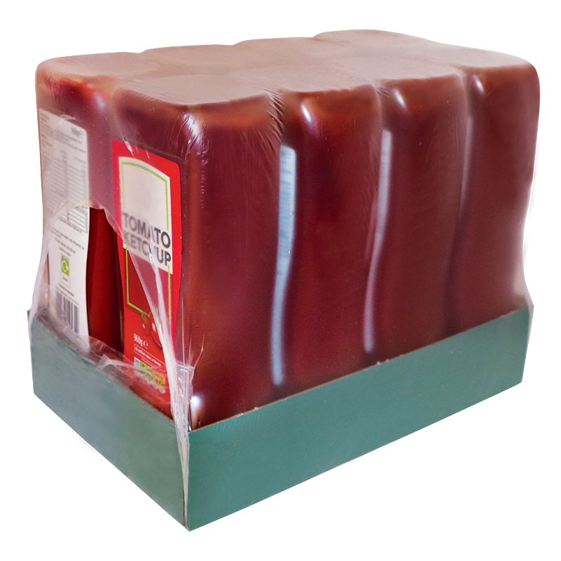 Tag: Bandeja + film - Botellas PET - botellas en PP - Productos alimentarios - Salsas - 2x4 packs