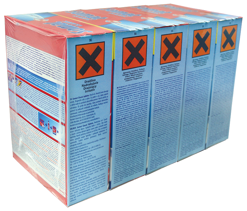 Tag: Bandeja + film - Cajas de cartón - Detergentes - Productos químicos - 5x1 packs
